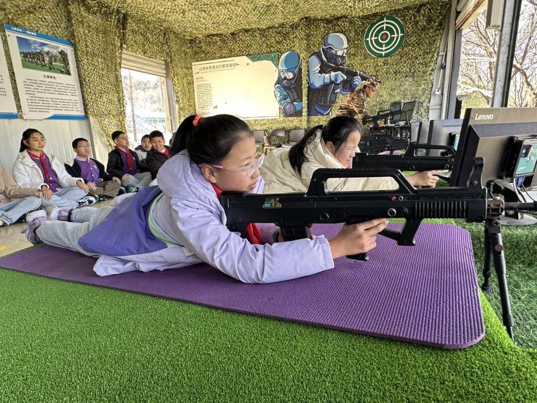 本次研学同样注重技能培养与劳动创造。激光打靶场上,同学们凝神屏息,在科技体验中学习军事知识,锻炼了专注与冷静的心理素质。